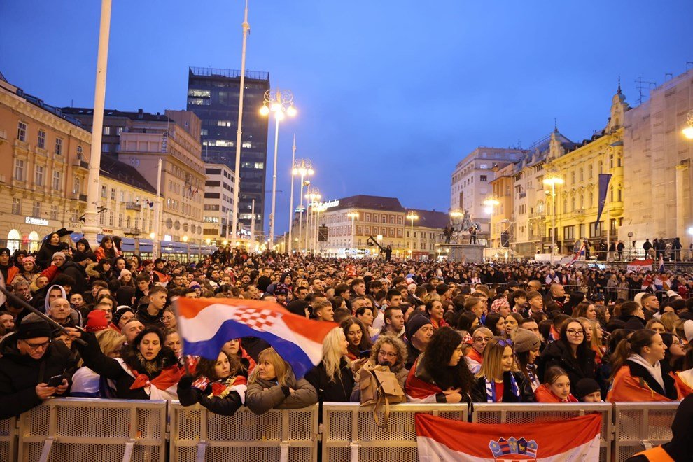 В 18:00 на площади бана Елачича собрались десятки тысяч человек. Гандболисты поднялись на сцену под приветствие Томпсона «Hvaljen Isus» («Хвала Иисусу»). Певец исполнил несколько песен, включая «Ako ne znaš što je bilo», «Geni kameni» и «Lijepa li si».