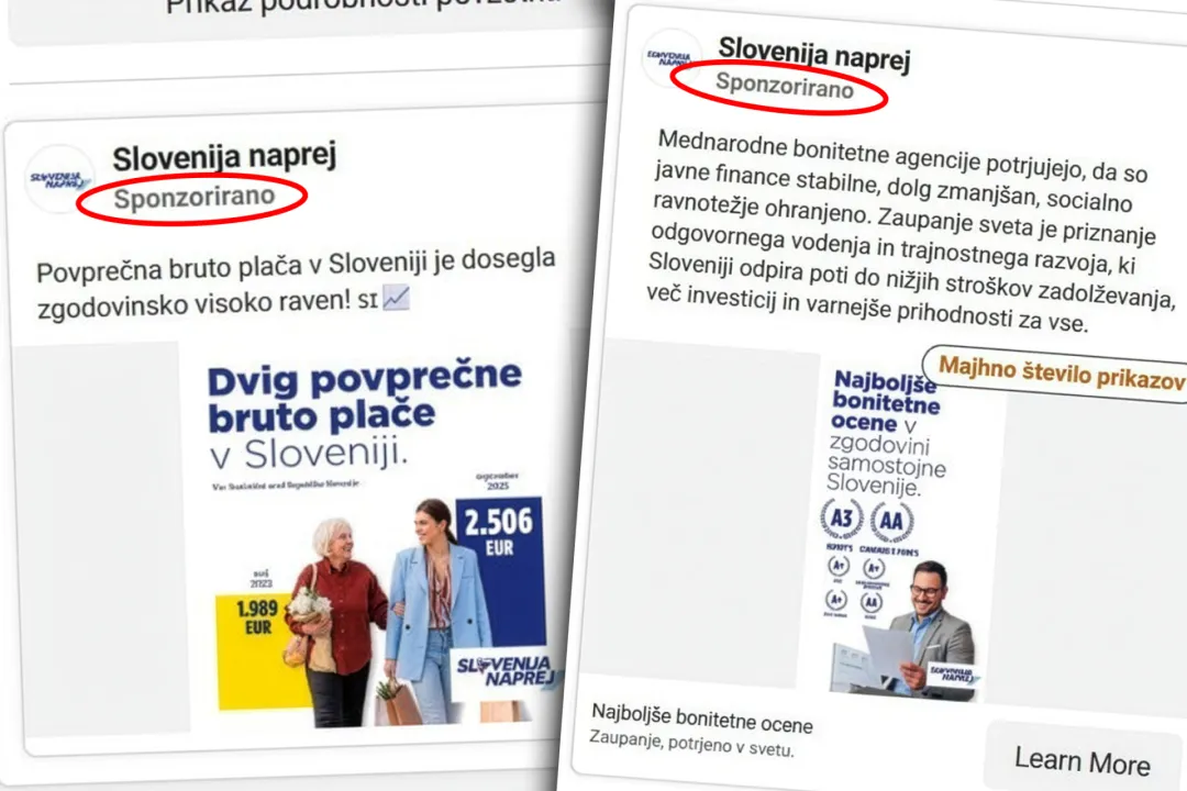 Однако анализ Meta Ad Library, проведённый словенским изданием Svet24, выявил системную аномалию. В период с 8 по 13 января 2026 года профиль «Slovenija naprej» запустил 62 рекламные кампании со статусом «активные». Контент продвигает достижения действующего правительства — рост зарплат, инвестиции в инфраструктуру, социальные программы.